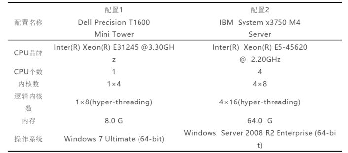 表1 测试机器参数配置情况