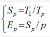 采用目前普遍评价并行计算性能的2个重要指标:加速比Sp和效率Ep,表达式如下: